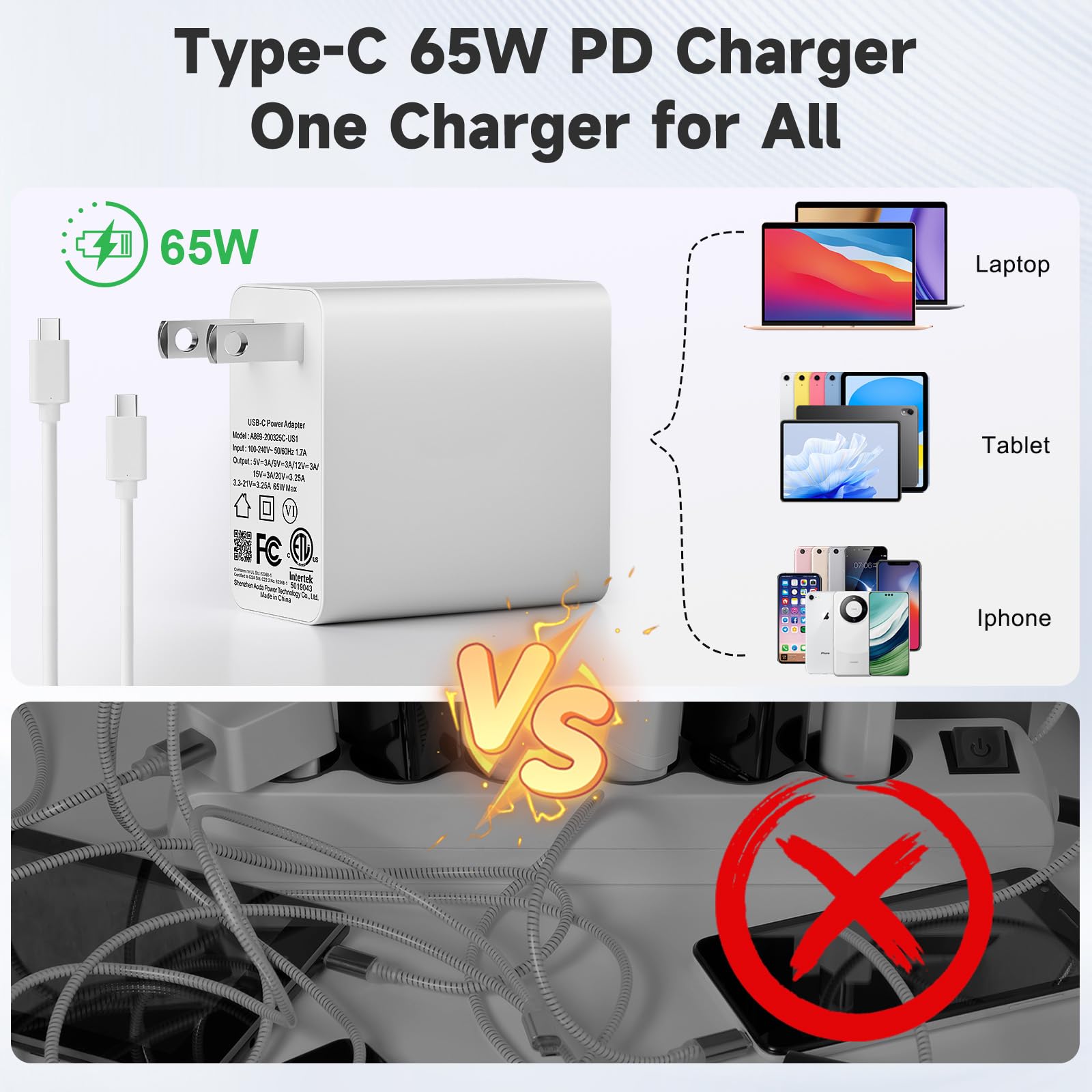 - Wide Ecosystem & Compatibility: 65W USB-C PD chargers are widely available and standard across many devices, improving the convenience of accessory and charger interchangeability.